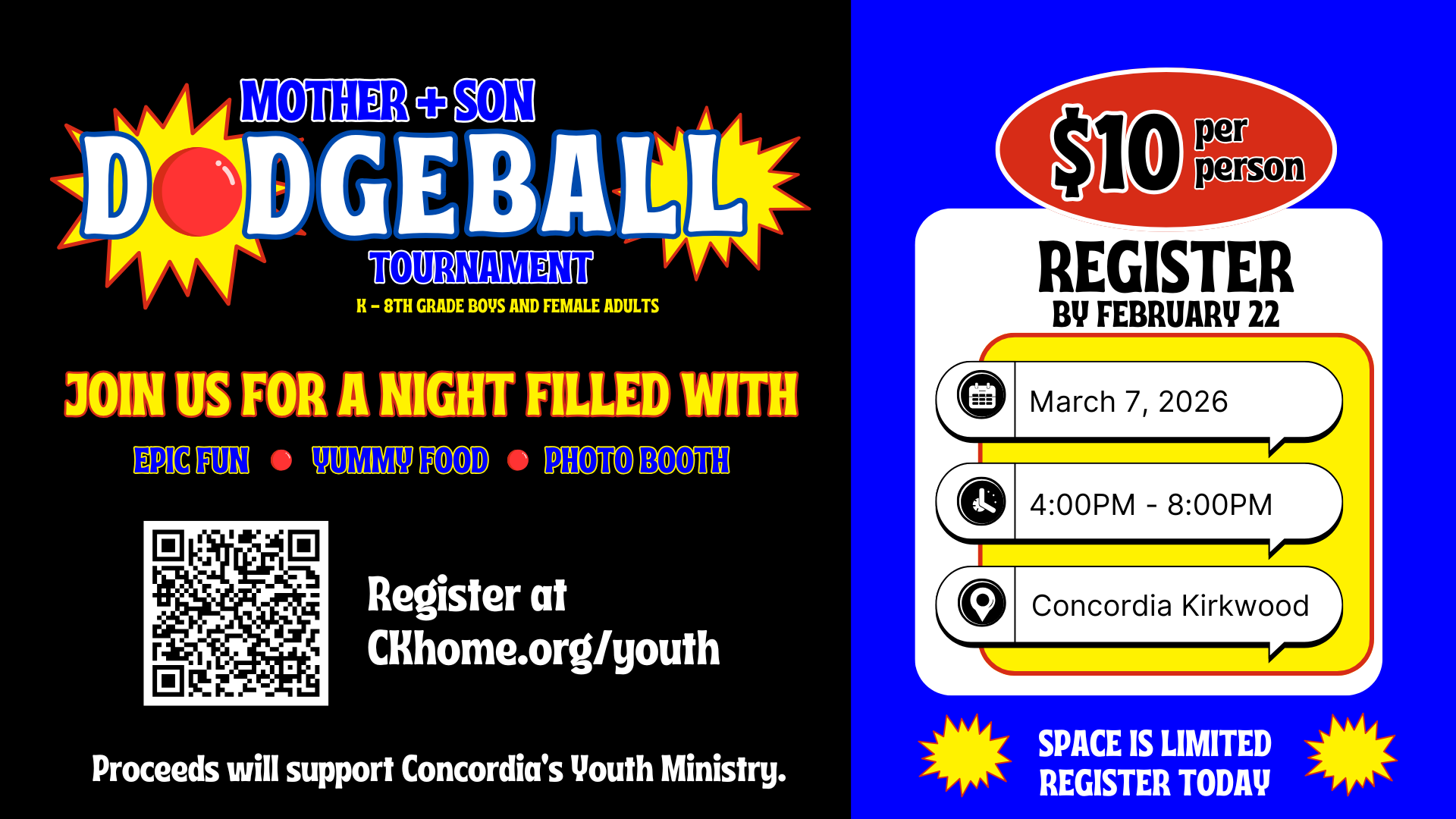 Get ready to dodge, duck, dip, and dive! Join us for an incredibly fun evening at the Third Annual Mother + Son Dodgeball Tournament. All mothers and female role models are invited to team up with their Kindergarten through 8th-grade boys for a night of friendly competition and connection. Beyond the court, look forward to delicious food, a lively photo booth, and plenty of fun and bonding. Don't miss out on making these memories—register below by February 22, 2026!